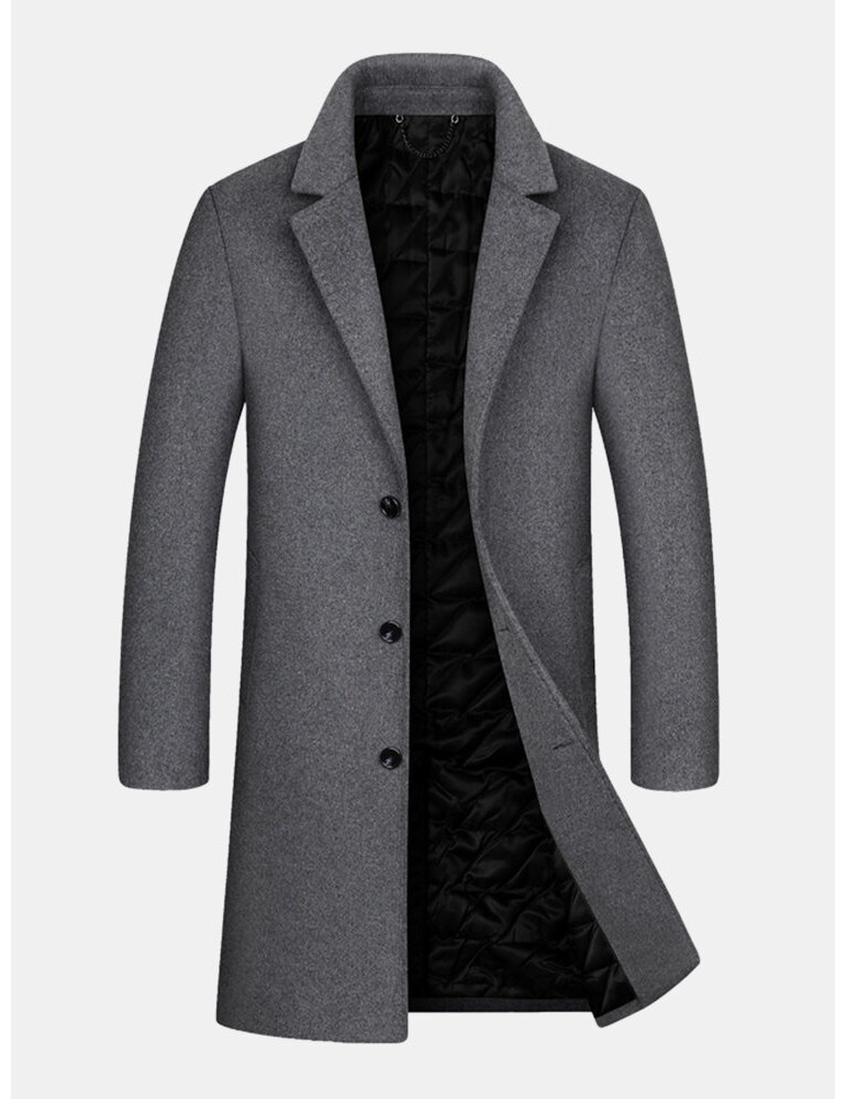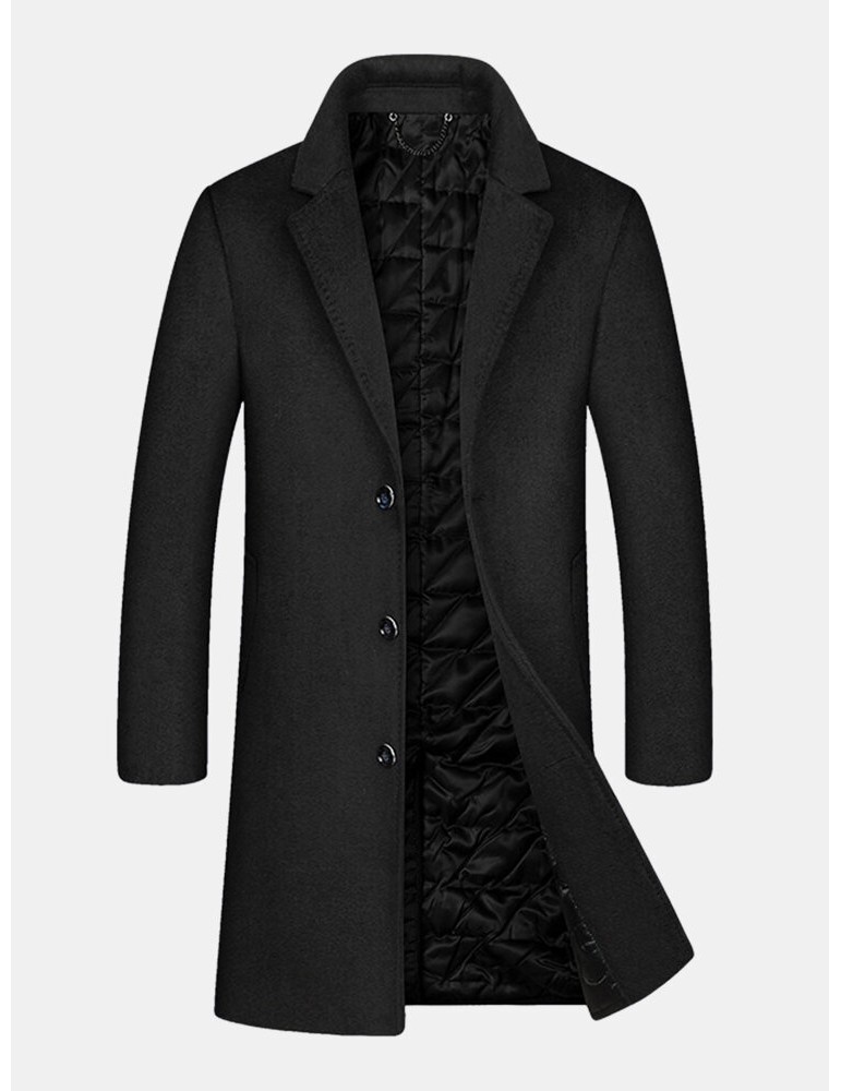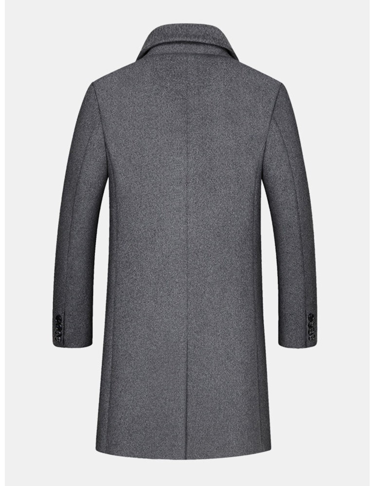 Coats - Mens Woolen Mid Length Single-Breasted Thick Business Coat