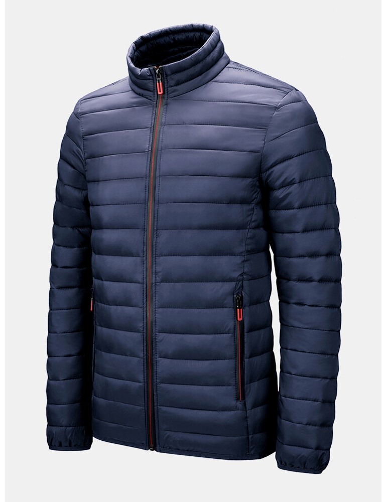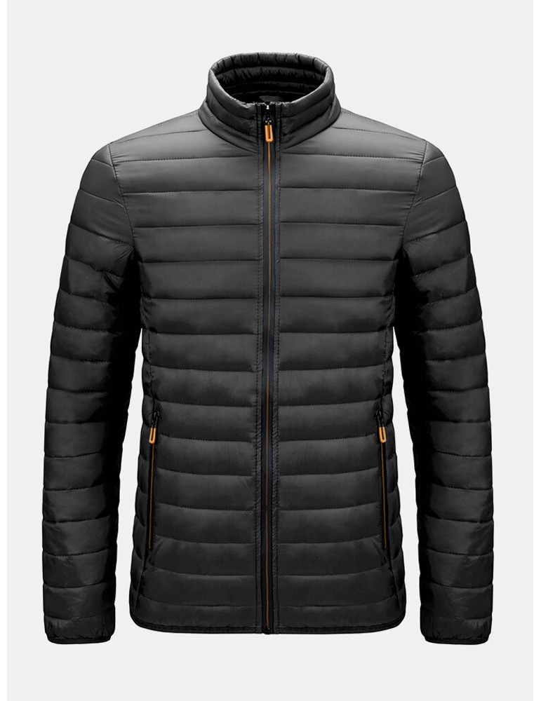 Coats - Mens Zip Front Quilted Solid Basic Padded Coats With Pocket