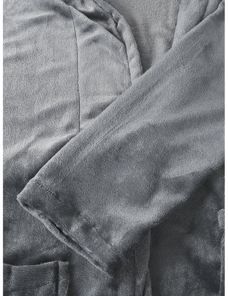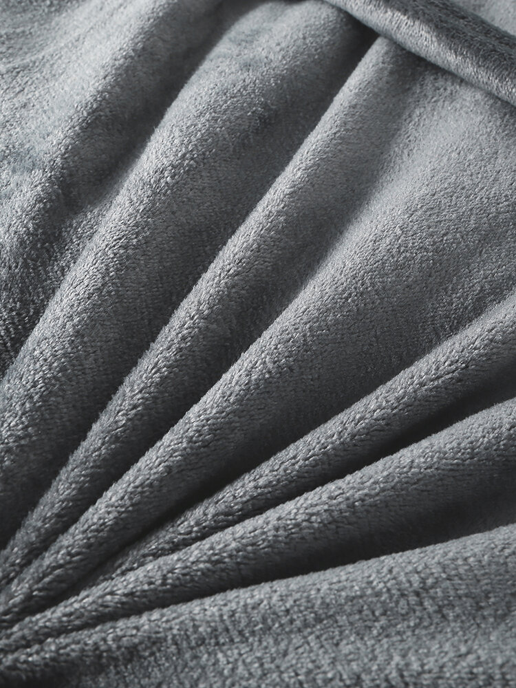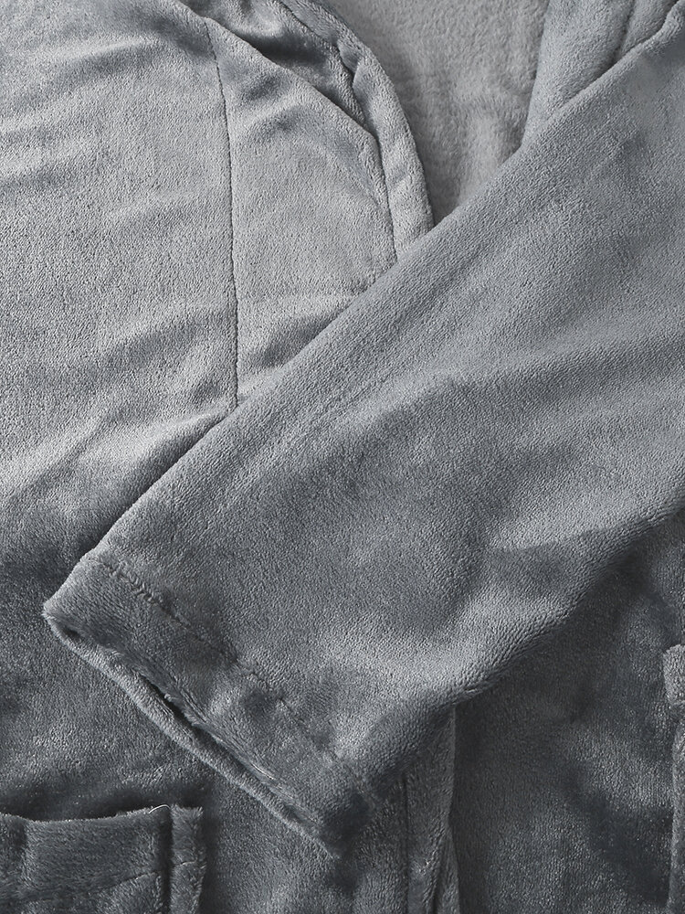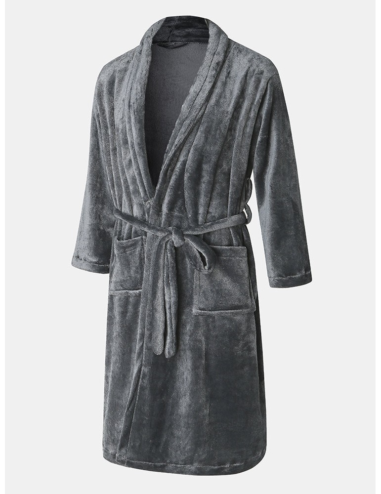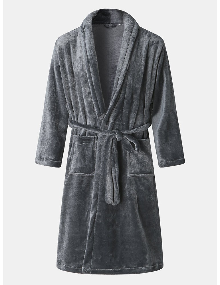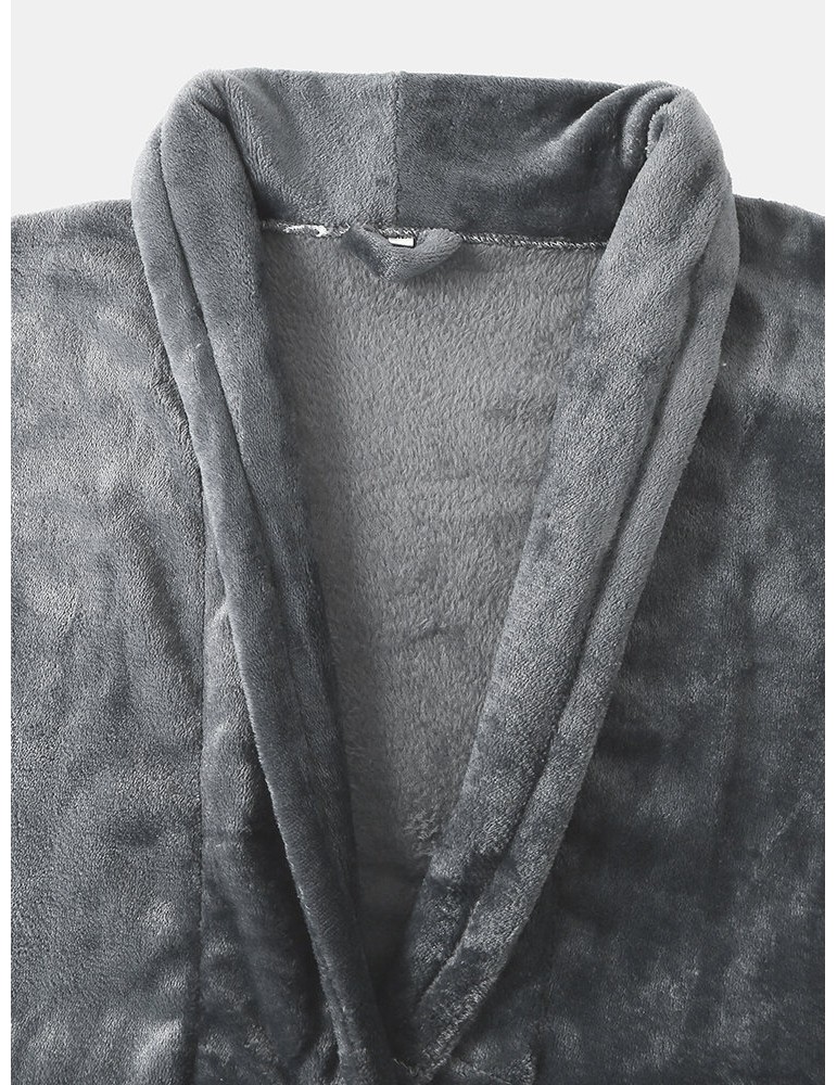 Robes - Mens Solid Color Flannel Thick Double Pocket Sashes Home Sleepwear Robes